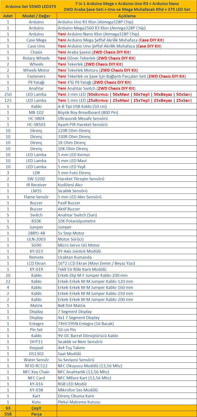 Arduino Uno R3 Ultimate Başlangıç Seti Kutulu 190 Parça 395 Adet Set